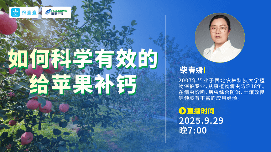 “种苹果的朋友们,是否为苹果上的黑点、苦痘病而头疼?这很可能不是病害,是‘缺钙’了!土壤补钙≠苹果吸收!2025年9月29日晚7点,柴老师将在直播间彻底讲